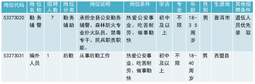 普洱市西盟縣公安局2020年度公開招聘勤務輔警、編外人員公告