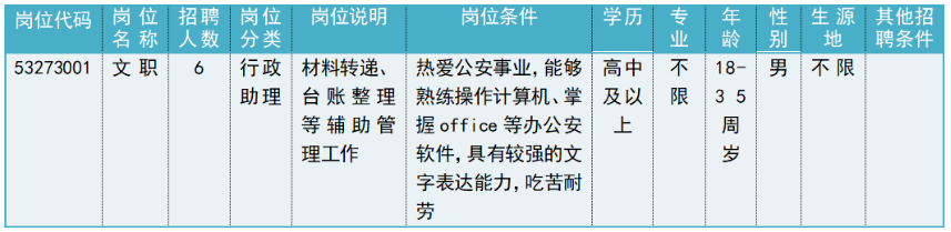 本次招錄共設1個崗位,男性6人。詳情請關注西“西盟警方”微信公眾號或西盟長安網(