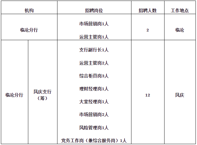 除具備以上基本條件外,各崗位具體條件詳見《富滇銀行臨滄分行2019年社會招聘具體崗位條件表》(附件)。