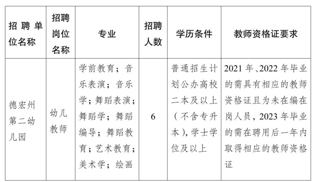 德宏州第二幼兒園2023年考核招聘緊缺專業學科優秀人才通告