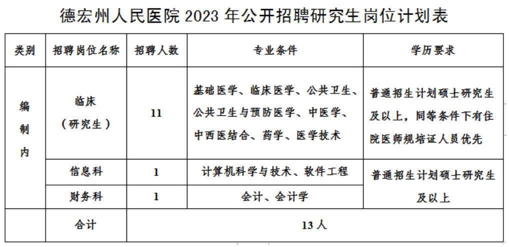 德宏州人民醫院2023年公開招聘研究生公告