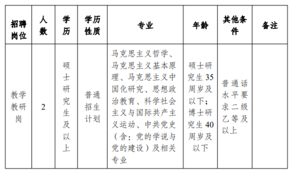 本次招聘崗位為楊善洲干部學院事業編制內教師崗位,招聘人數2人,專門從事楊善洲干部學院教學和教研工作,參與課程、課件、教材和現場教學點的開發與研究,承擔培訓班的授課任務等具體工作,崗位要求如下: