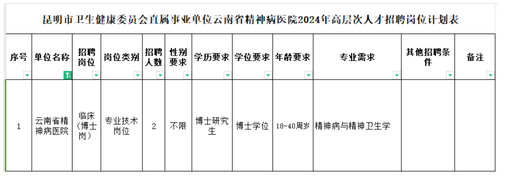 云南省精神病醫院2024年面向社會公開招聘高層次人才的公告