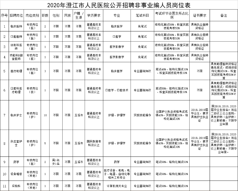 澄江市人民醫院將招聘28名非事業編制工作人員(第一批)