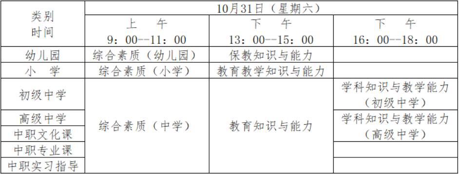 (二)考試時間:2020年10月31日,所有考試科目均采用紙筆方式進行,具體安排如下:
